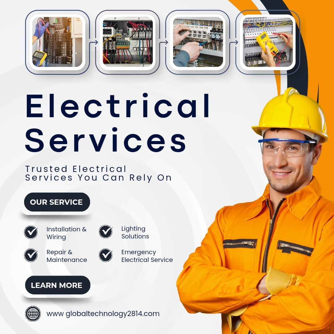Top Electrician for New & Old Home Repair in Hyderabad – Global Technology Global Technology is Hyderabad’s most trusted name for complete electrician services — specializing in new home electrical setup, old house rewiring, short circuit repair, and emergency power fault solutions. Whether you’re renovating your home, shifting to a new flat, or facing electrical issues in your old building, our expert electricians deliver fast, safe, and professional service across all areas of Hyderabad. We provide affordable, reliable, and same-day electrician service with 24/7 customer support. We handle complete home electrical installation, wiring and rewiring, MCB panel repair, meter fixing, fan, light, and switchboard fitting, inverter installation, UPS connection, and earthing system setup. For new construction homes, we design the entire electrical layout, install concealed wiring, and ensure load balancing for all modern appliances. For old houses, we perform detailed inspections, remove damaged wires, replace old MCBs, and upgrade to modular switches and energy-efficient fittings. Global Technology electricians are trained, verified, and equipped with advanced tools to handle any size of residential or commercial project. Every job is performed with top-quality materials and strict safety standards. We offer one-month service warranty on all repair work and installation. Our Electrician Services in Hyderabad Include: New home electrical wiring & design Old house rewiring and power upgrade Electrical fault detection & short circuit repair Switchboard, MCB, and fuse repair UPS, inverter, and stabilizer installation Ceiling fan, profile light, and decorative fan fitting False ceiling light & chandelier setup Water motor and geyser electrical connection Generator earthing and power point installation Smart home automation & electrical safety inspection We ensure every customer receives a quick response, expert diagnosis, and long-lasting repair — no matter where you are in Hyderabad. Electrician Services Available in All Hyderabad Areas: We proudly serve every major location in and around Hyderabad, including: Central Hyderabad: Ameerpet, Begumpet, Somajiguda, Panjagutta, Khairatabad, Lakdi-ka-pul, Himayatnagar, Basheerbagh, Abids, Nampally. West Hyderabad: Gachibowli, Kondapur, Miyapur, Kukatpally, Hitech City, Madhapur, Jubilee Hills, Banjara Hills, Tolichowki, Manikonda. East Hyderabad: Uppal, Habsiguda, Tarnaka, Nacharam, Moula Ali, Malkajgiri, ECIL, Kushaiguda. North Hyderabad: Bowenpally, Balanagar, Kompally, Suchitra, Alwal, Jeedimetla, Quthbullapur. South Hyderabad: Mehdipatnam, Attapur, Rajendranagar, Langar Houz, Falaknuma, Bahadurpura, Chandrayangutta, Shivrampally, Katedan. Outskirts & New Developments: Nallagandla, Tellapur, Bachupally, Patancheru, RC Puram, Chandanagar, Beeramguda, Nagole, LB Nagar, Vanasthalipuram, Hayathnagar, Dilsukhnagar, Malakpet, Santosh Nagar, Saidabad. No matter your location, our mobile electrician team will reach your doorstep on time — fully equipped with tools and materials to complete the job efficiently. Why Choose Global Technology Electricians in Hyderabad ✅ Expert & Verified Technicians – All our electricians are trained, experienced, and background-verified for your safety. ⚡ Fast & Same-Day Service – Emergency support for power failures and short circuits. 🔧 New & Old Home Expertise – From modern apartments to vintage houses, we handle all kinds of wiring systems. 💡 Comprehensive Electrical Work – Fans, lights, inverters, earthing, or wiring — everything under one roof. 🧾 Transparent Pricing – No hidden charges; upfront quotation before the work starts. 🧰 One-Month Warranty – Guaranteed satisfaction and free revisits within 30 days if needed. 📞 24x7 Customer Support – Always available at Call 7780517507 for quick booking and assistance. Best Electrical Solutions for Every Home At Global Technology, we believe safety and efficiency come first. Our electricians carefully inspect the entire electrical system before starting work. We use branded wires (Finolex, Havells, Polycab), MCBs, and switches to ensure long-term durability and safety. For new houses, we design energy-efficient systems to reduce your electricity bills and improve appliance performance. For old homes, we replace outdated wiring that can cause overload, fire hazards, or frequent tripping. Our service also includes load testing, phase balancing, grounding improvement, and surge protection installation. We provide custom electrical AMC plans (Annual Maintenance Contracts) for apartments, villas, gated communities, and offices across Hyderabad. Regular maintenance helps prevent unexpected breakdowns and keeps your home safe year-round. Our Specialized Electrician Services: Profile Light Installation – Expert fitting for LED strip and ceiling profile lights for modern interiors. Decorative Fan Installation – Stylish fans fitted safely with proper balancing and wiring. Smart Switch & Wi-Fi Lighting Setup – For smart homes and voice-control systems. Generator & UPS Wiring – Proper isolation and earthing for backup power solutions. Geyser Connection – Safe, waterproof electrical wiring for instant and storage water heaters. AC & Refrigerator Power Point Setup – Dedicated MCB lines for heavy-load appliances. Drill & Hang Service – Support for hanging lights, TVs, mirrors, and electrical fittings. Earthing & Lightning Protection – Advanced copper plate and chemical earthing for safety. Distribution Board & Load Panel Repair – For apartments, offices, and villas. Electrical Renovation – Upgrading old homes with modular switches, concealed wiring, and new sockets. Customer Satisfaction is Our Priority Every customer is important to us. We believe in building trust through professional service, on-time work, and clean finishing. Our electricians wear uniforms, carry ID cards, and leave your space tidy after completion. Whether 